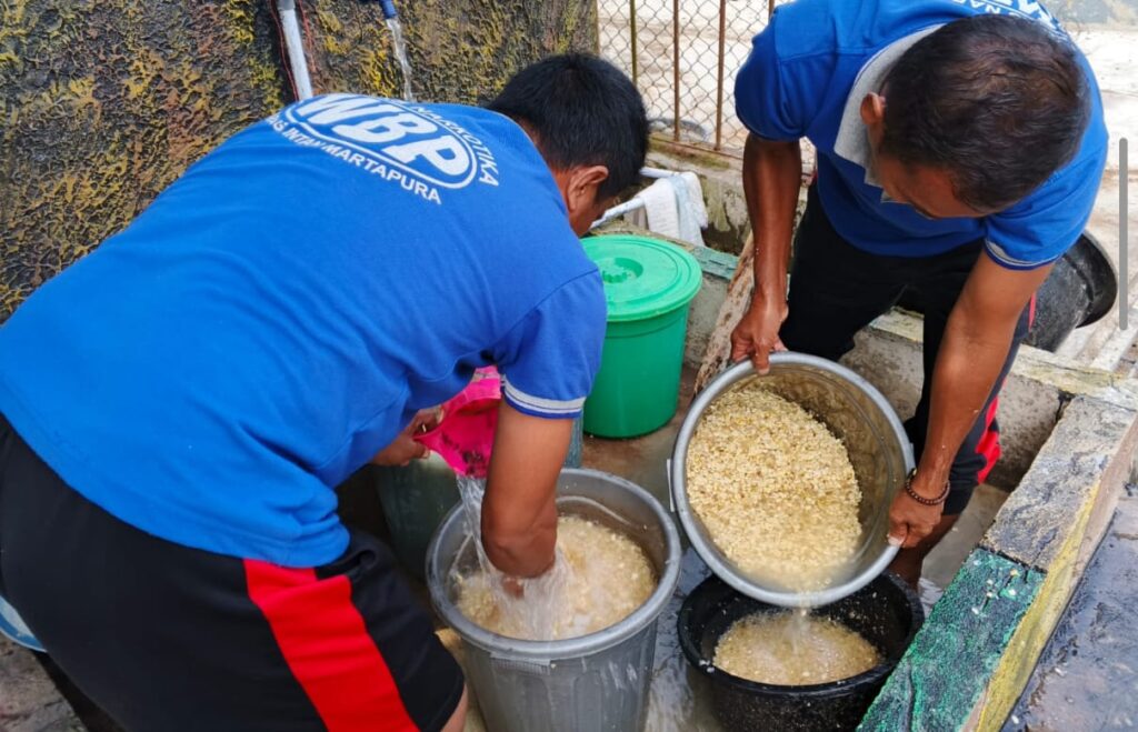 abtu (9/8), Warga Binaan Pemasyarakatan (WBP) Lapas Narkotika Kelas IIA Karang Intan kembali melaksanakan kegiatan produktif dengan membuat tempe di
