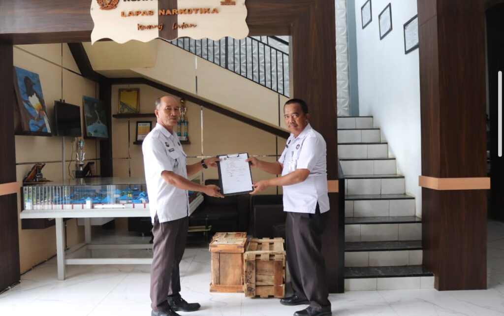 Lapas Narkotika Kelas IIA Karang Intan melaksanakan kegiatan serah terima gembok yang berlangsung di Ruang Tunggu Lapas, Sabtu (9/8). Kegiatan