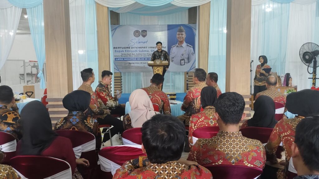 Karang Intan, INFO_PAS – Lembaga Pemasyarakatan (Lapas) Narkotika Kelas IIA Karang Intan menggelar kegiatan pisah sambut pejabat struktural eselon IV dan V di aula ruang kunjungan, Kamis (5/6). Kegiatan ini sebagai bagian dari dinamika organisasi dan penyegaran struktur guna memperkuat pelaksanaan tugas dan fungsi pemasyarakatan.