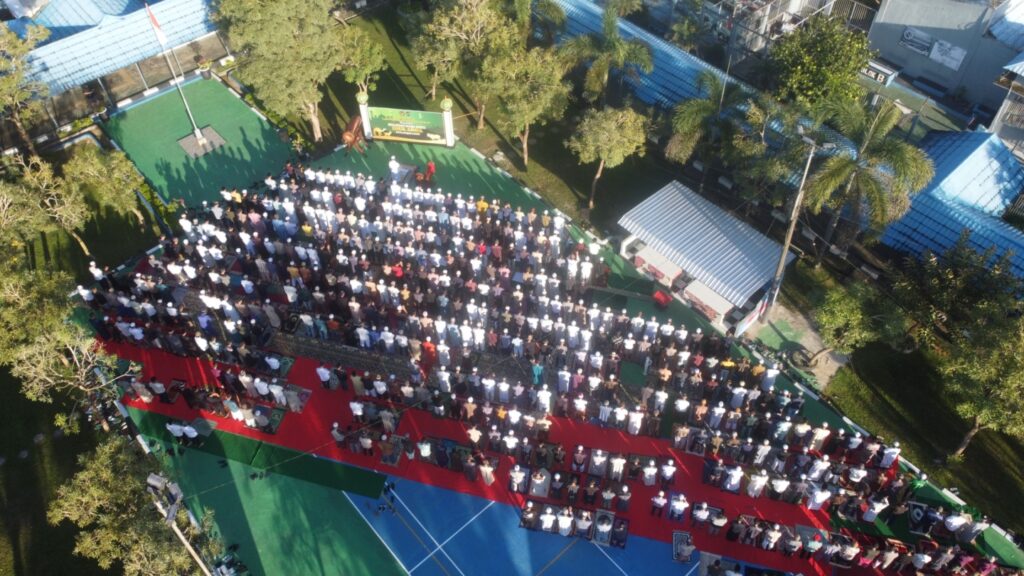 Karang Intan, INFO_PAS – Gema takbir berkumandang mengisi setiap penjuru Lembaga Pemasyarakatan (Lapas) Narkotika Kelas IIA Karang Intan, menyambut datangnya Hari Raya Idul Adha 1446 H / 2025 M. Ratusan Warga Binaan Pemasyarakatan (WBP) memadati Lapangan Upacara dalam Lapas untuk mengikuti pelaksanaan Salat Idul Adha, Jumat (6/6).