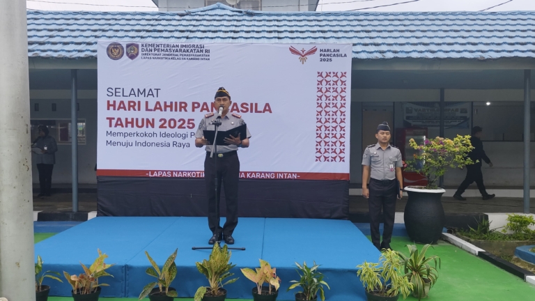 Karang Intan, INFO_PAS — Lembaga Pemasyarakatan (Lapas) Narkotika Kelas IIA Karang Intan menggelar upacara peringatan Hari Lahir Pancasila tahun 2025 dengan khidmat di halaman dalam lapas, Senin pagi (2/6). Upacara yang diikuti oleh seluruh jajaran petugas dan warga binaan ini menjadi sarana penguatan nilai-nilai kebangsaan serta pembinaan karakter dalam semangat Pancasila.